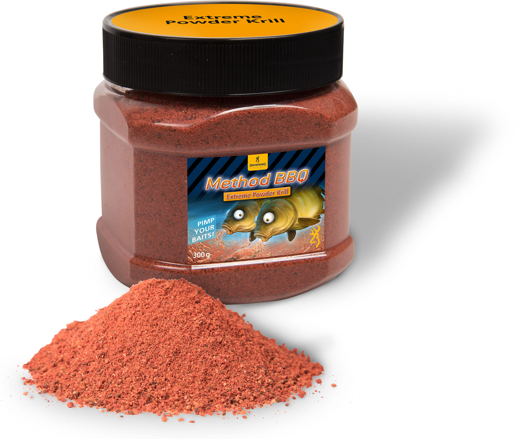 Browning Method BBQ Extreme Powder Krill  ist eiin hochkonzentriertes Pulver aus gemahlenen Heilbutt-Pellets, um seinem Futter durch Proteine und Aroma noch einen zusätzlichen Kick zu verleihen. Einfach ein bis zwei Löffel unter 1 kg Futter mischen, fertig. Auch gut geeignet, um süßem Futter eine zusätzliche Note zu verleihen.