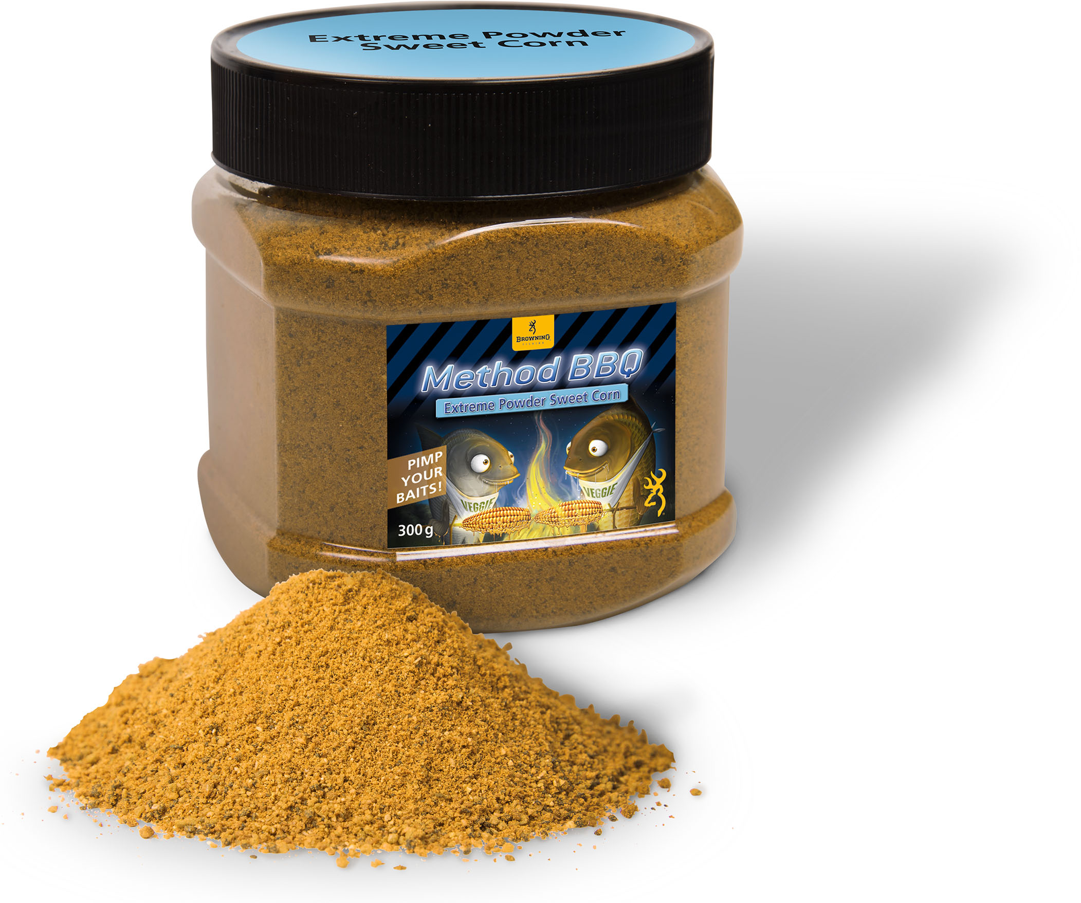 Der Maisextrekt im Browning Method BBQ Extreme Powder Sweet Corn macht dieses Pulver einfach unvergleichlich. Einfach ein bis zwei Löffel unter 1 kg Futter mischen und ab geht’s. Zieht alle Sorten von Fisch magisch auf den Futterplatz.