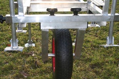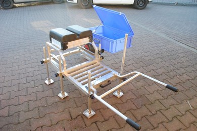 Eine exakt auf das Feederangeln ausgerichtete und optimierte Sitzkiepe. Der Rahmen besteht komplett aus Aluminium und verfügt über ein einschiebbares Fußpodest. Alle vier Beine haben einen Durchmesser von 250mm und verfügen über bewegliche Schlammplatten. Eine Besonderheit der Alu Power ist das integrierte Transportsystem welchen aus einem Einradsystem und einem extrem stabilen Transportgriff besteht. Somit lässt sich die Kiepe ohne Anstrengung leicht zum Angelplatz transportieren. Im Lieferumfang ist der Sitzaufbau nicht enthalten.